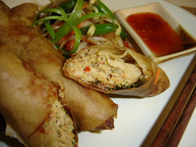 I have adjusted pretty well to eating american foods in that, I don't have to eat rice in every meal, everyday anymore. But nevertheless, I gotta have my comfort food once or twice a week, at least. This means rice, or something else that's familiar to me.So last night, I decided to do a dish that I grew up with. This dish is what we call "lumpia" (pronounced as loom-pya) in our vernacular, or a.k.a. spring roll to the rest of the world. This dish and "pansit" (Filipino noodles) are the staple of every Filipino party. Go to a Filipino gathering and chances are, you will find this dish served on the table.